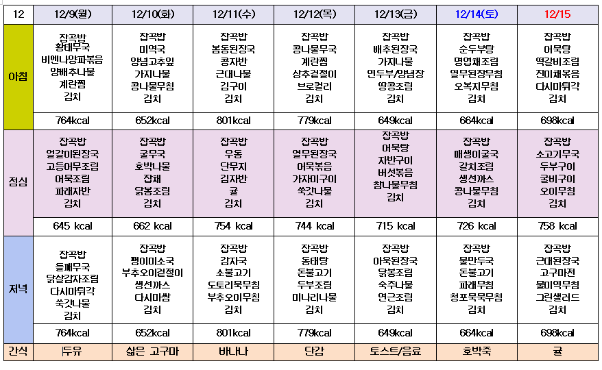 2019³â12¿ù2ÁÖ ½Ä´ÜÇ¥
