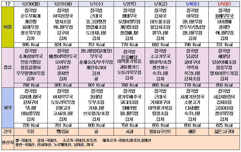 2019³â12¿ù5ÁÖ~2020³â1¿ù1ÁÖ ½Ä´ÜÇ¥