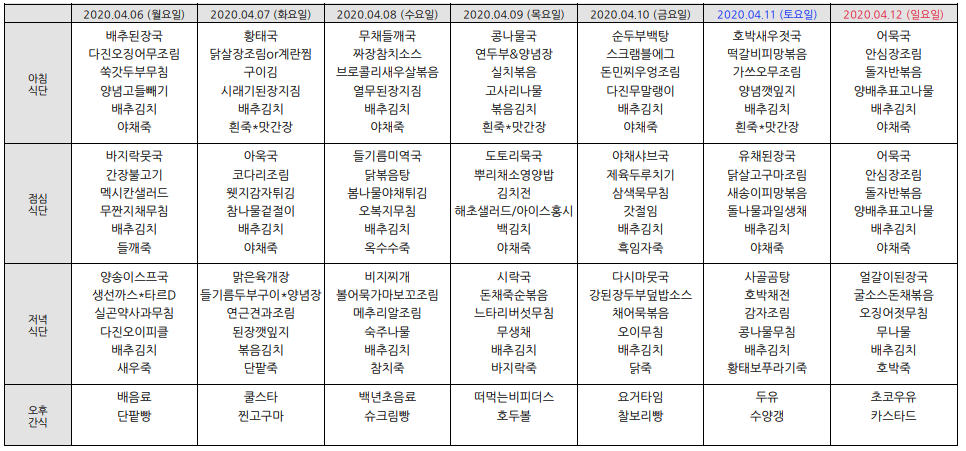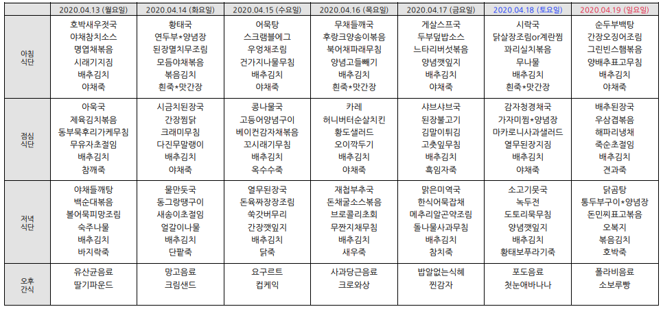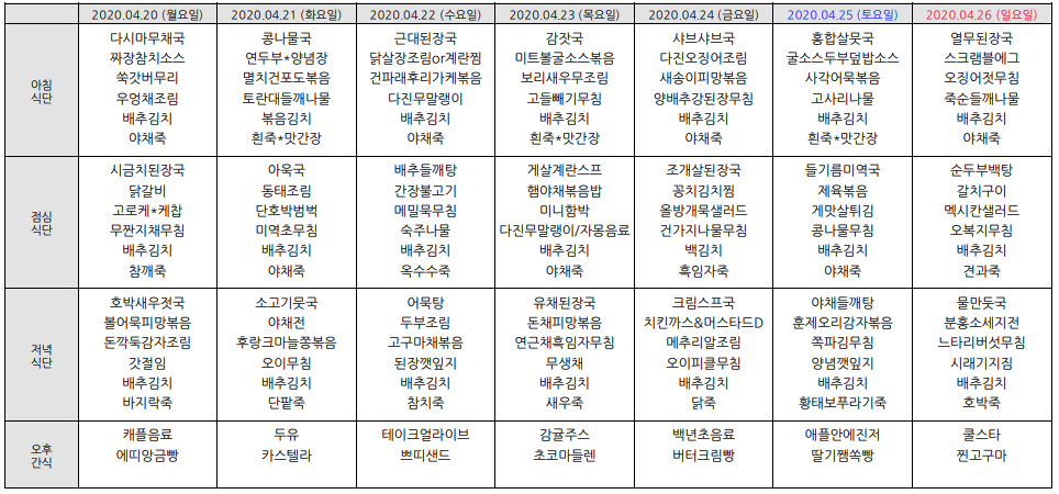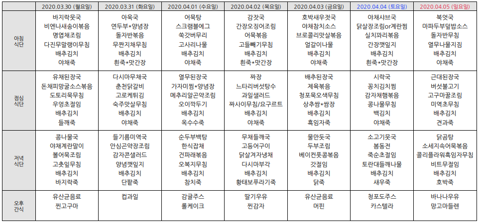 2020³â4¿ù ½Ä´ÜÇ¥ÀÔ´Ï´Ù.