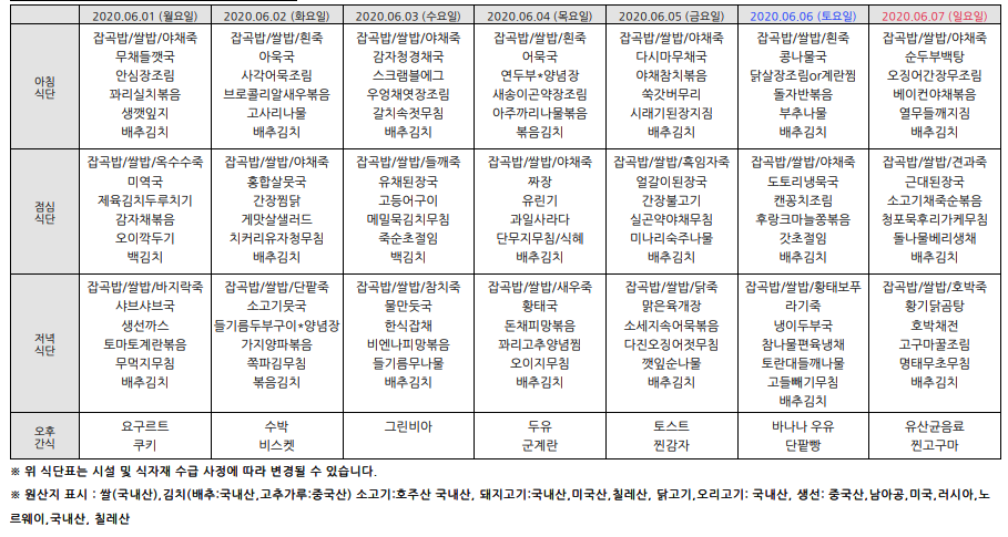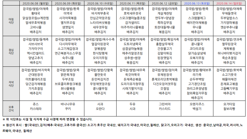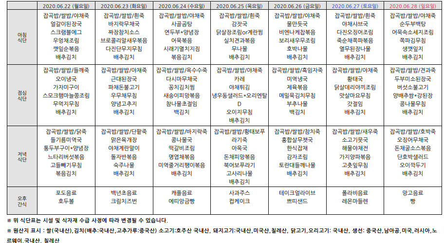 2020³â6¿ù ½Ä´ÜÇ¥ÀÔ´Ï´Ù.