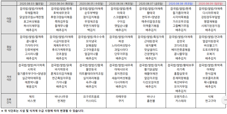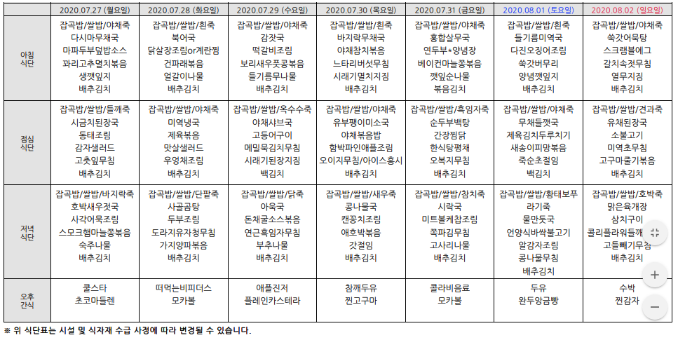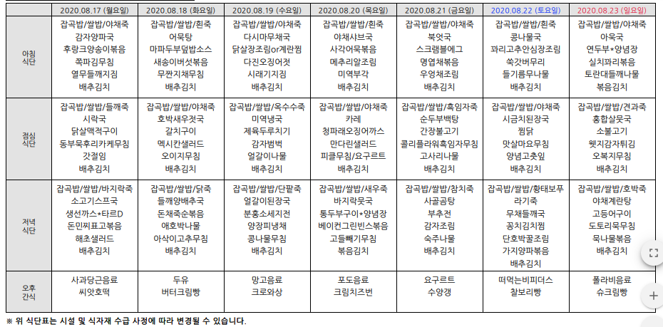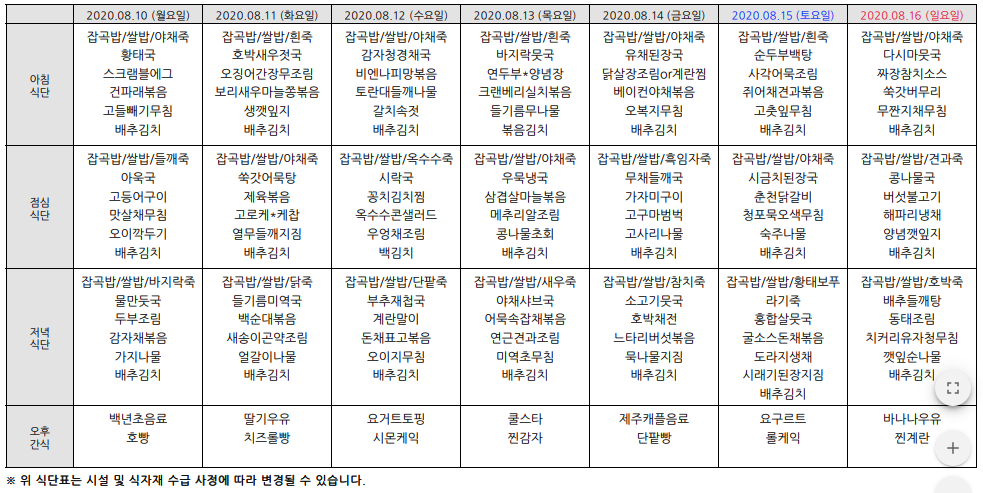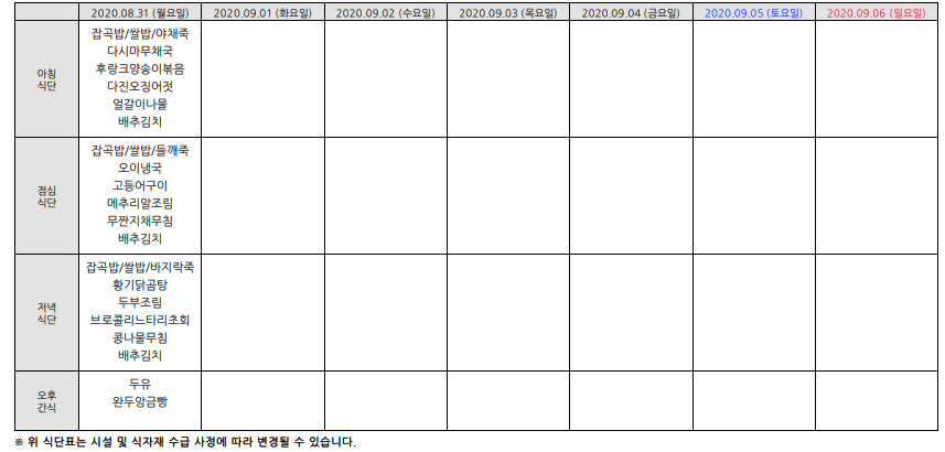 2020³â8¿ù ¿ù°£½Ä´ÜÇ¥ÀÔ´Ï´Ù.