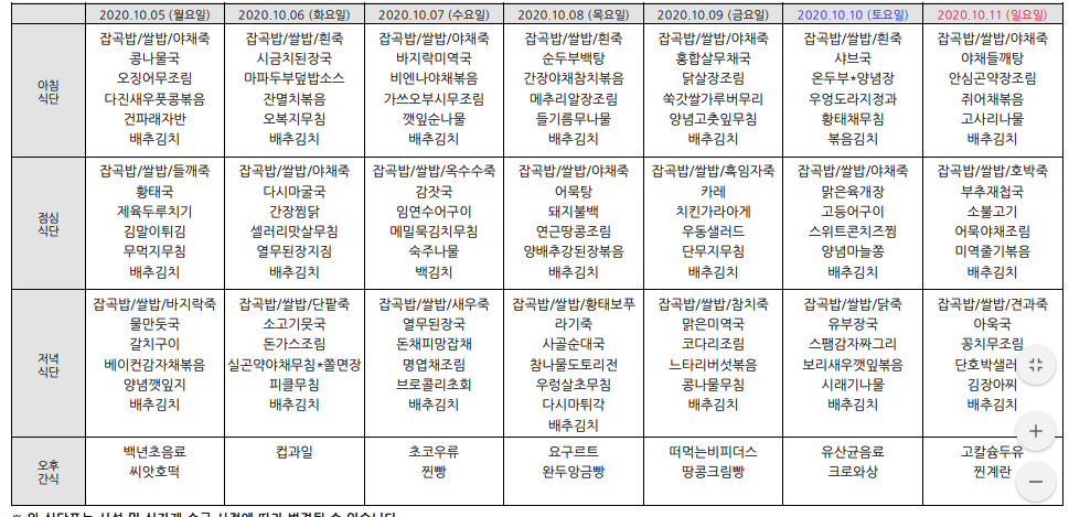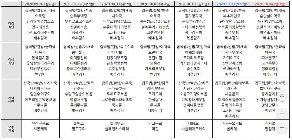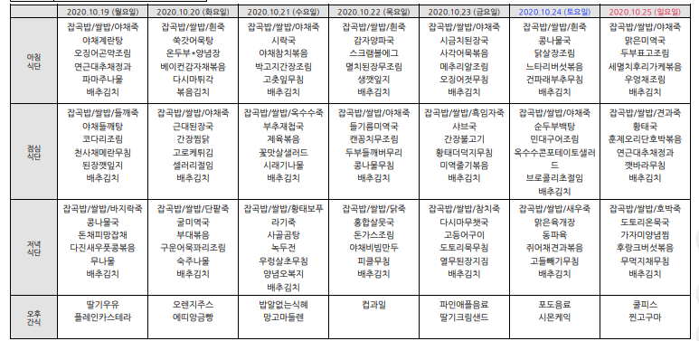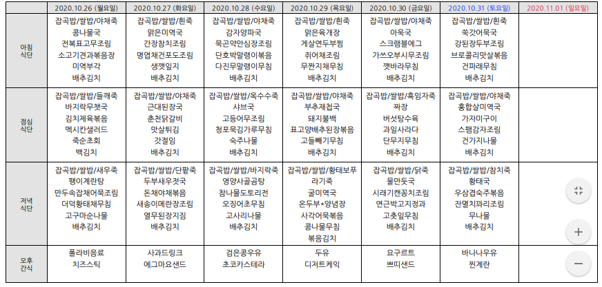2020³â10¿ù ½Ä´ÜÇ¥ÀÔ´Ï´Ù.
