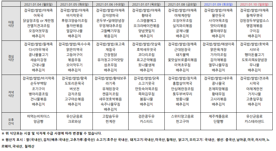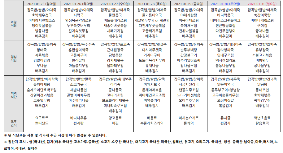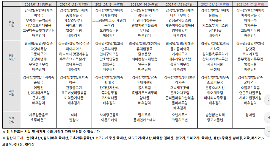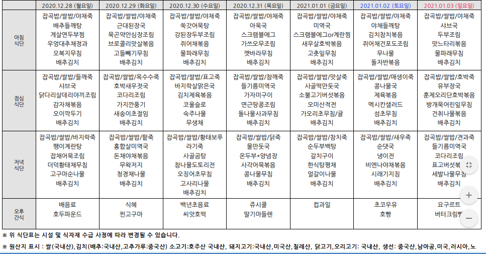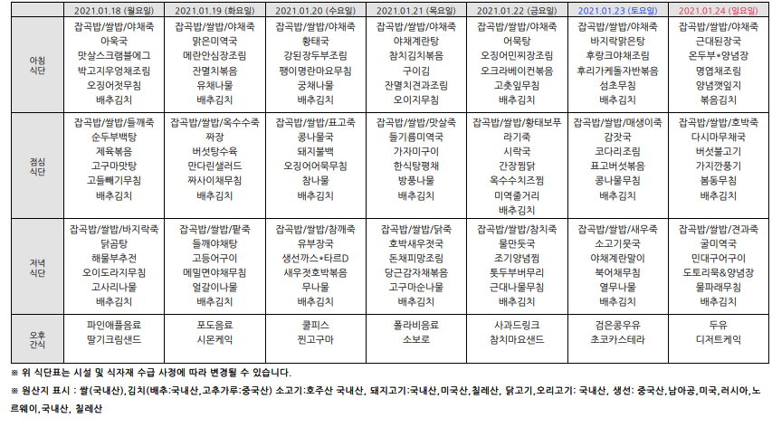 2021³â1¿ù ½Ä´ÜÇ¥¾È³»ÀÔ´Ï´Ù