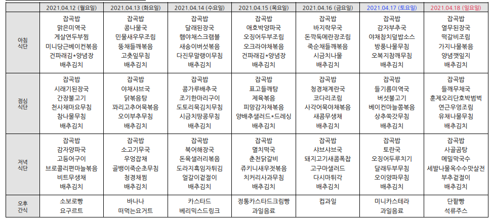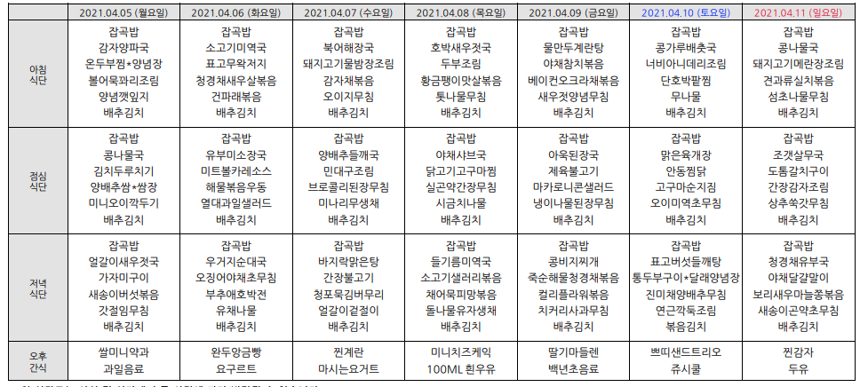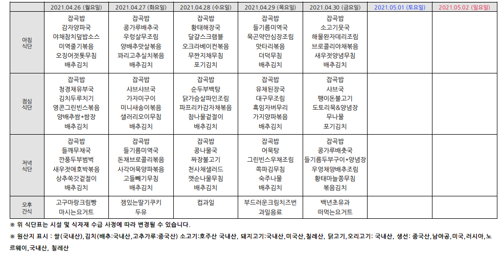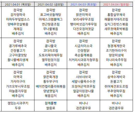 2021³â4¿ù ½Ä´ÜÇ¥ ÀÔ´Ï´Ù.