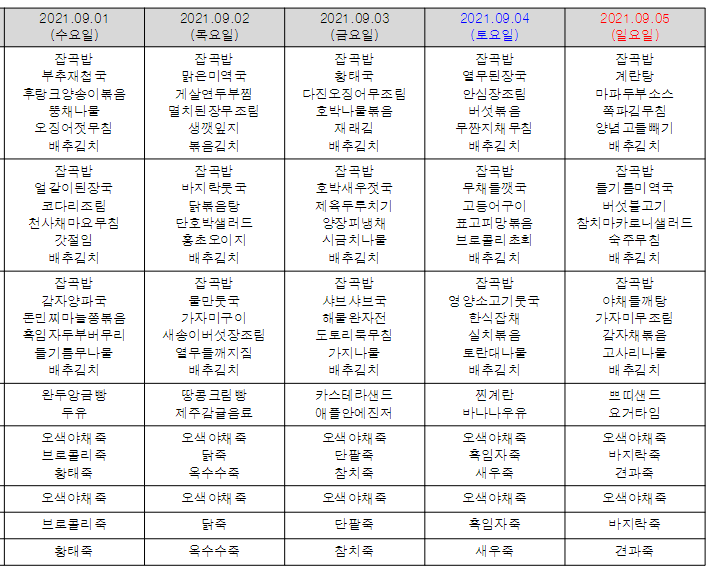 2021³â9¿ù ½Ä´ÜÇ¥ÀÔ´Ï´Ù
