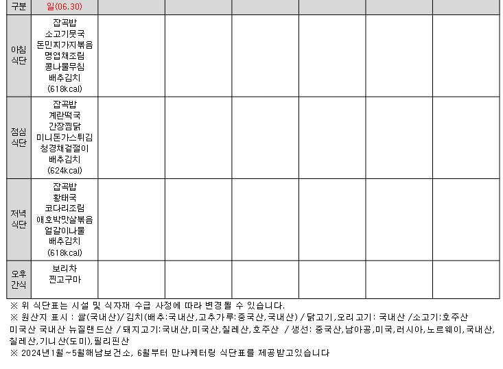 2024³â6¿ù ½Ä´ÜÇ¥¾È³»ÀÔ´Ï´Ù