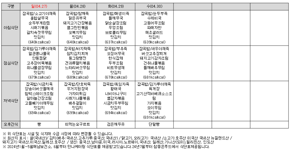 2025³â4¿ù ½Ä´ÜÇ¥ ÀÏÁ¤Ç¥ ¾È³»