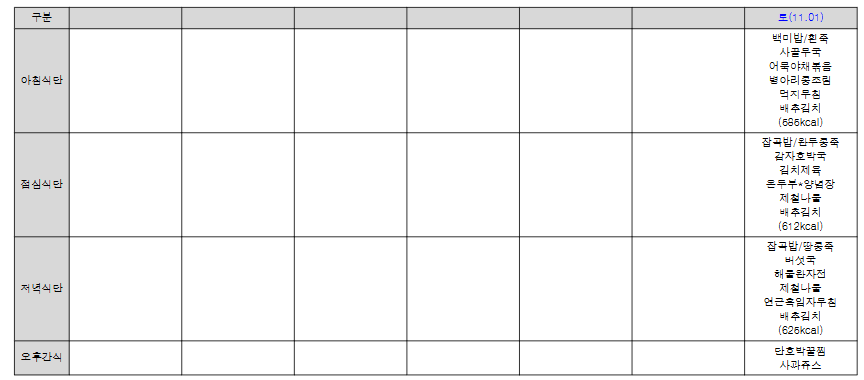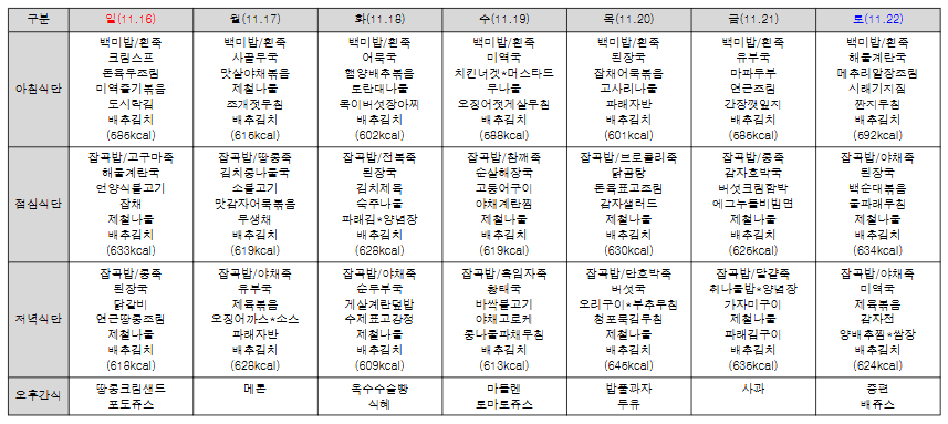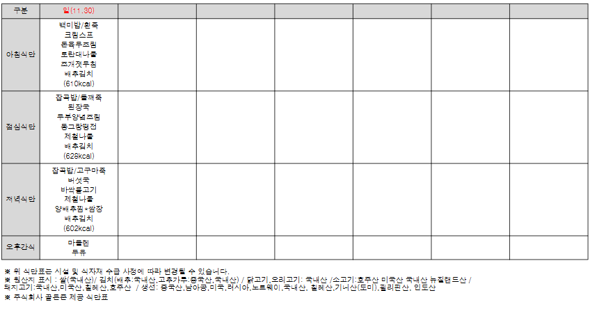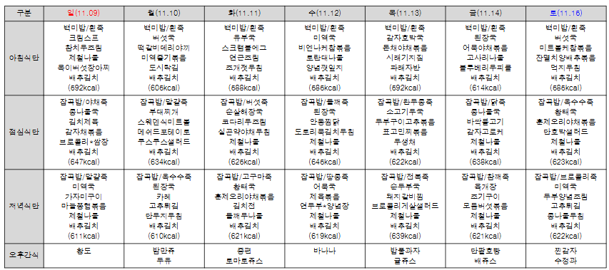 2025³â11¿ù ½Ä´ÜÇ¥ÀÏÁ¤Ç¥