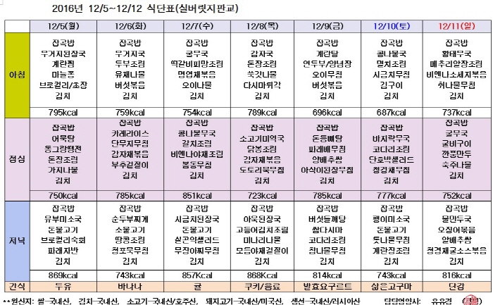 2016³â12¿ù2ÁÖ ÁÖ°£½Ä´ÜÇ¥ ¾È³»ÀÔ´Ï´Ù