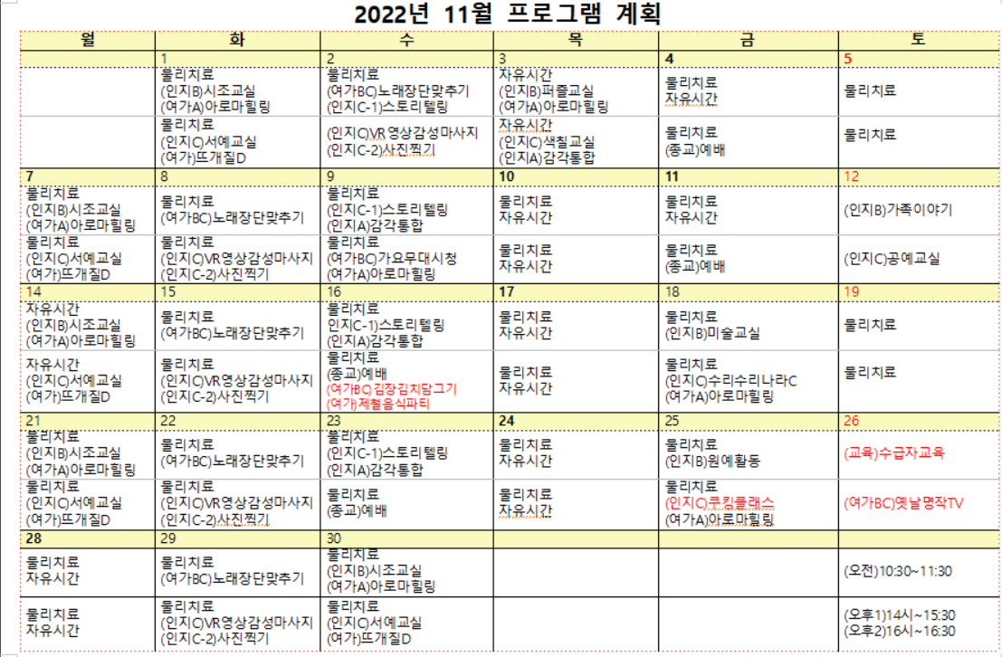 11¿ù ÇÁ·Î±×·¥ °èȹ
